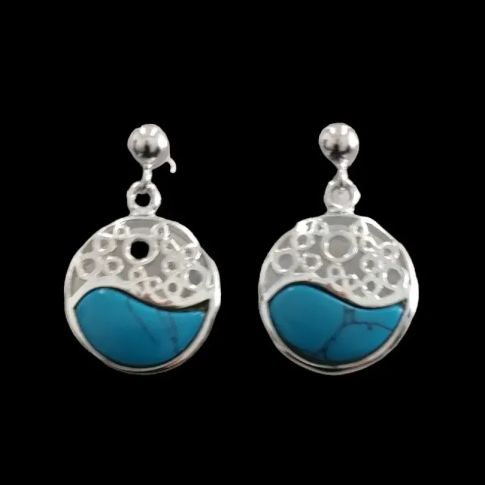 BRINCO REDONDO PEDRA AZUL COM DESENHO...